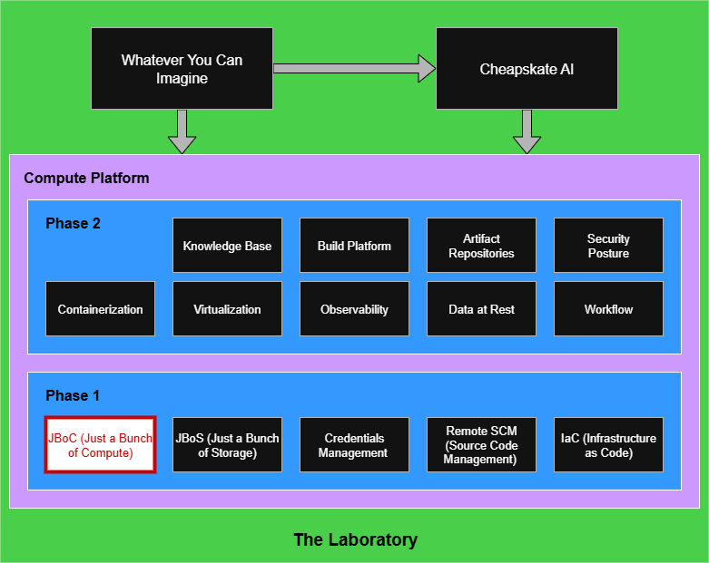 Time to get down to business. Phase 1 of the plan is the rudimentary layer to building your own home-brew “mad scientist” lab for software engineering experimentation. JBoC — Just a Bunch of Compute — is about deciding the physical portion of the platform.